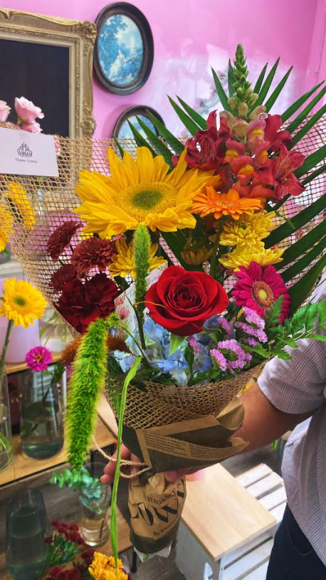 Autumn in Paradise is a bouquet that captures the warmth of fall with a tropical twist. This vibrant arrangement blends rich hues of red, orange, pink, yellow, and blue, evoking the glow of a golden island sunset. Each bloom is thoughtfully selected to radiate both tropical charm and autumn coziness. Wrapped in our signature premium style, Autumn in Paradise is perfect for any celebration — from birthdays to “just because” moments. Let this stunning bouquet transport your loved one to a paradise kissed by fall colors.